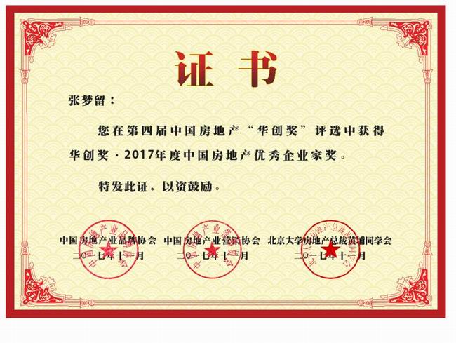 《華創(chuàng)獎?2017年度中國房地產(chǎn)***企業(yè)家獎》